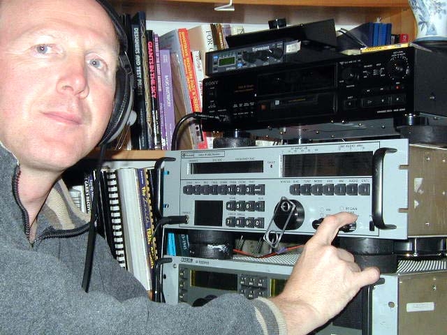 Also the red and black cable provides 12v to a muffin fan blowing through the 2050 for cooling. Below the 2050 is a Racal 1792….a very nice and sensitive receiver in itself, with a great selection of filters. As a dx machine it’s just about as good as the 2050, but a little bit more awkward to operate compared to the 2050. One must enter a "0" before the frequency if below 10 Megs, just like my Kenwood R5000. Above the 2050 is a Sony minidisk deck. A great improvement over cassette tapes in my opinion! The 6-second cache is very very worthwhile. No more lost Ids at the top of the hour. I love the ease of editing too. I have a number of these handy units, all purchased used over eBay. Above the MD is the Timewave 599zx. I own two. Another absolute must. Instantly kills all those unwanted whistles at a touch of a button. |